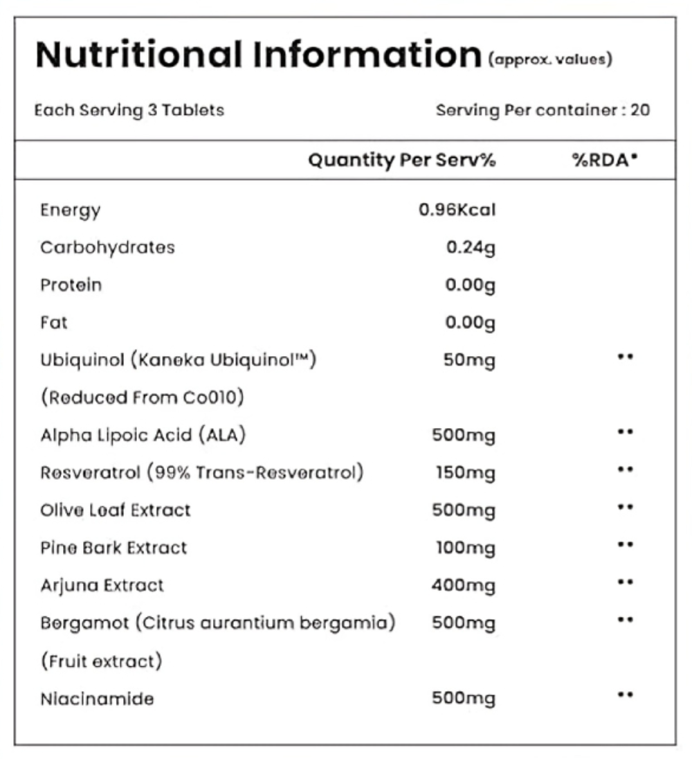 - Promotes Heart Health: Formulated with potent antioxidants and heart-supporting nutrients like CoQ10 and Omega-3 fatty acids to maintain cardiovascular wellness and support optimal heart function.