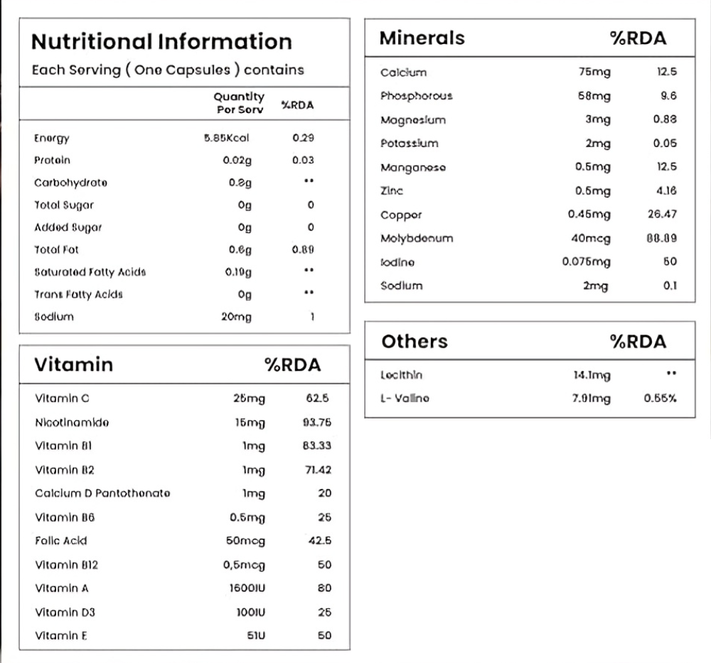 - Bone and Joint Health: Contains Calcium, Vitamin D, and other nutrients for bone strength.